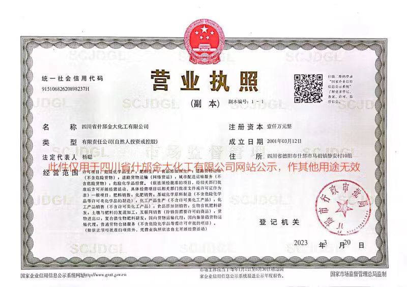 四川省什邡金大化工有限公司-是位于中國四川省的一家專業生產磷化工系列產品的廠家。所處地理位置資源豐富,交通便利,緊鄰成綿高速復線,距離兩路口火車站1000米。公司成立于1996年,多年來一直從事磷酸鹽的開發與生產。公司擁有職工65余人,其中各類工程技術人員20人,資產總額5000萬元,占地11000余平方米。